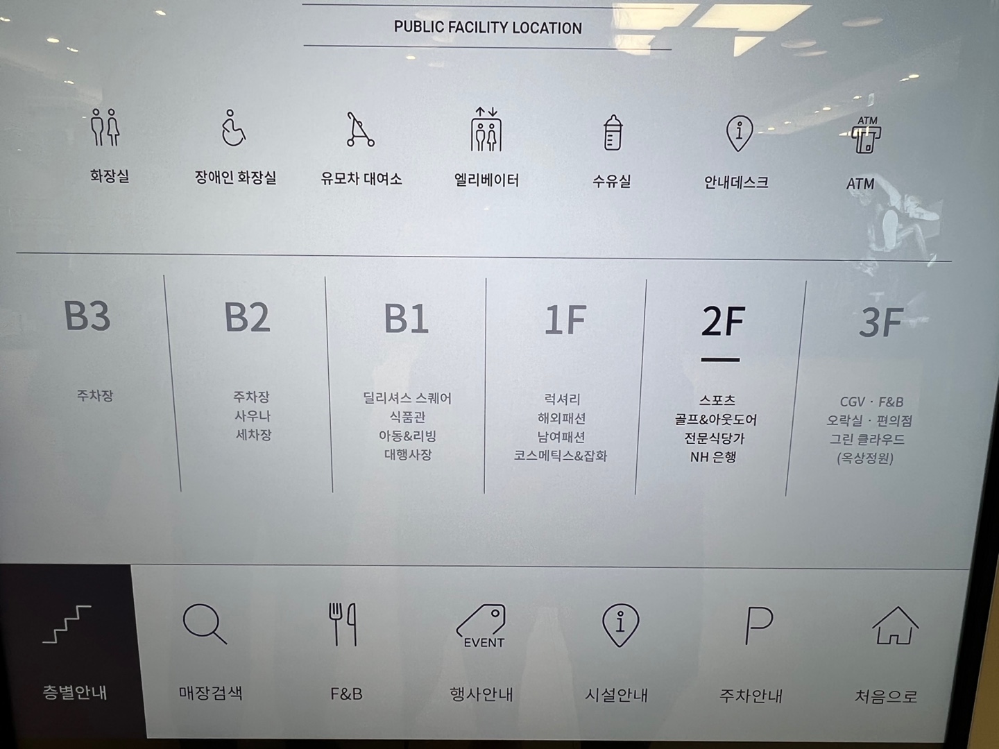 지하 2층엔 사우나가 있는듯했다. 얼른 코로나가 잠잠해져야 될텐데ㅠㅠ 요즘 평택도 확진자 수가 많아 갈 엄두가 나지 않는다.