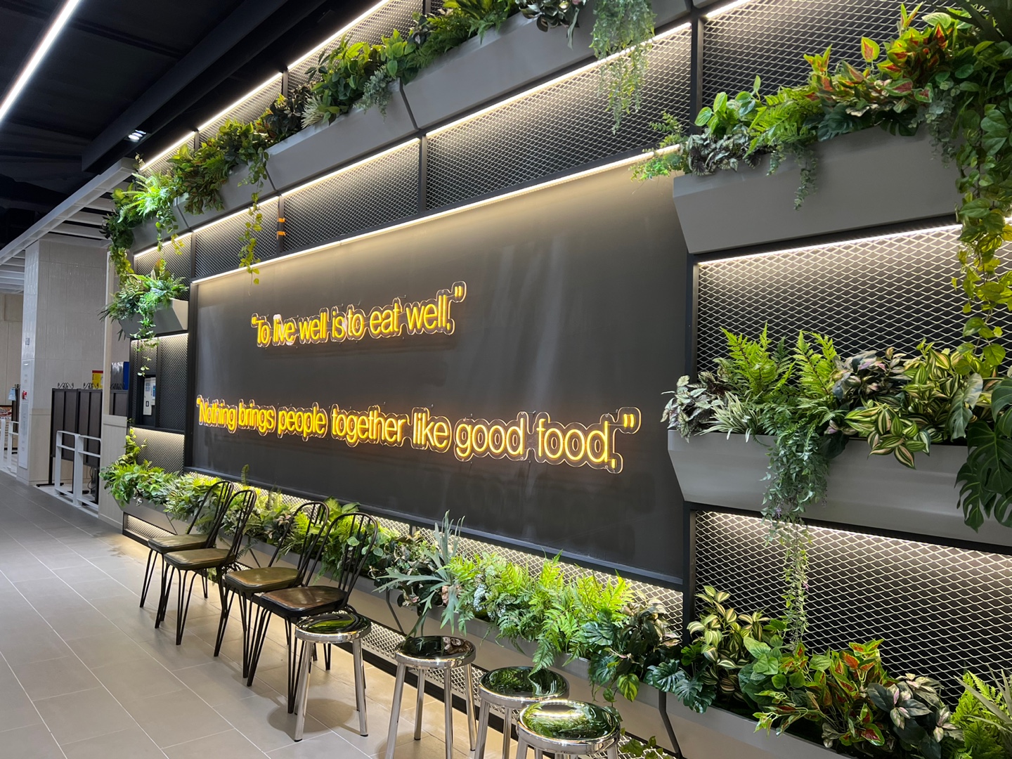 식물들이 많이 있어 푸드코트라는 이미지와 잘 어울린다. 음식들이 신선하고 싱그러울것 같은 느낌!