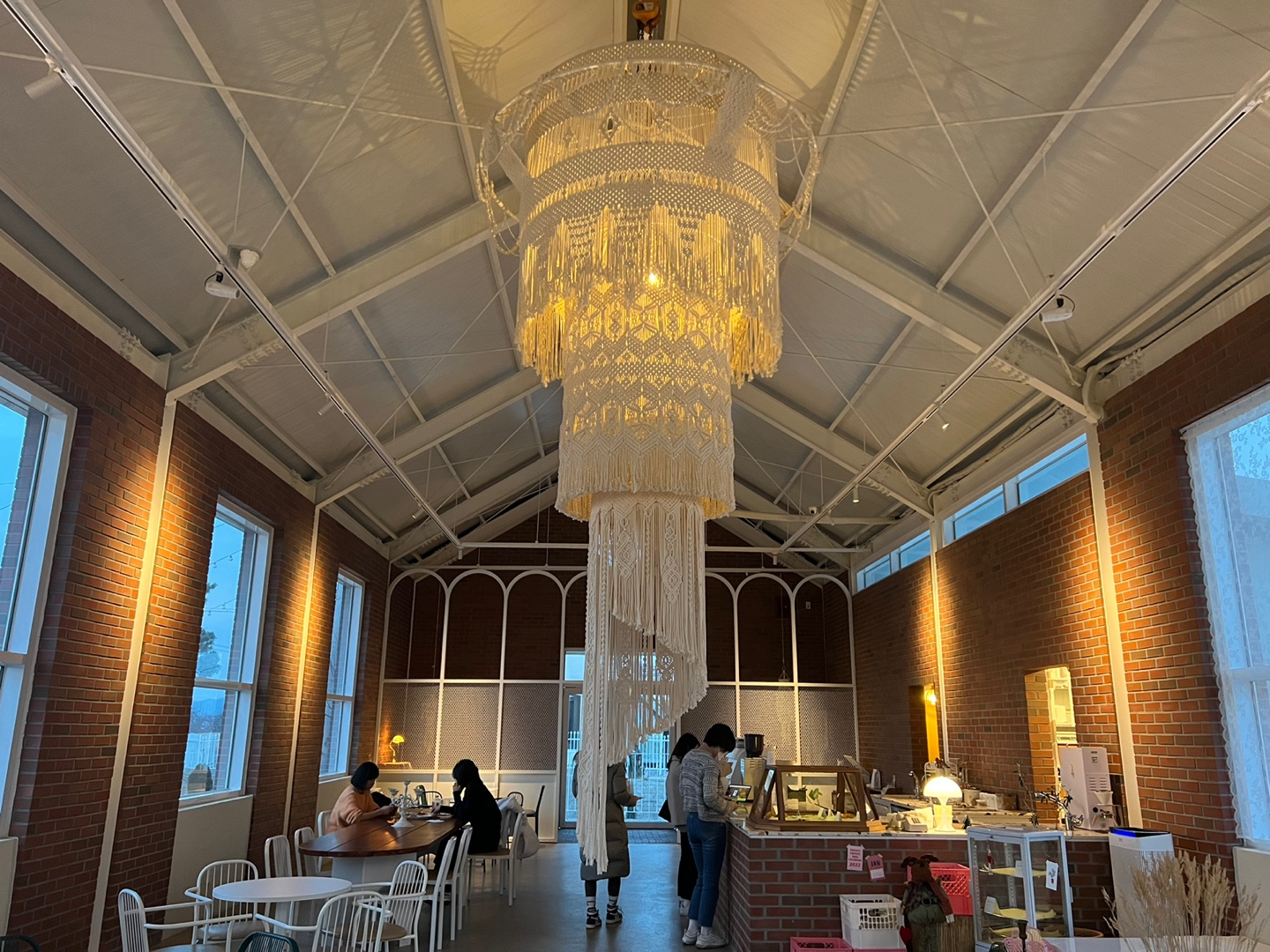 들어가자마자 엄청 큰 샹들리에(?)가 보인다. 전등 색이 대부분 따듯한 색감이라 분위기가 아늑해보인다.
