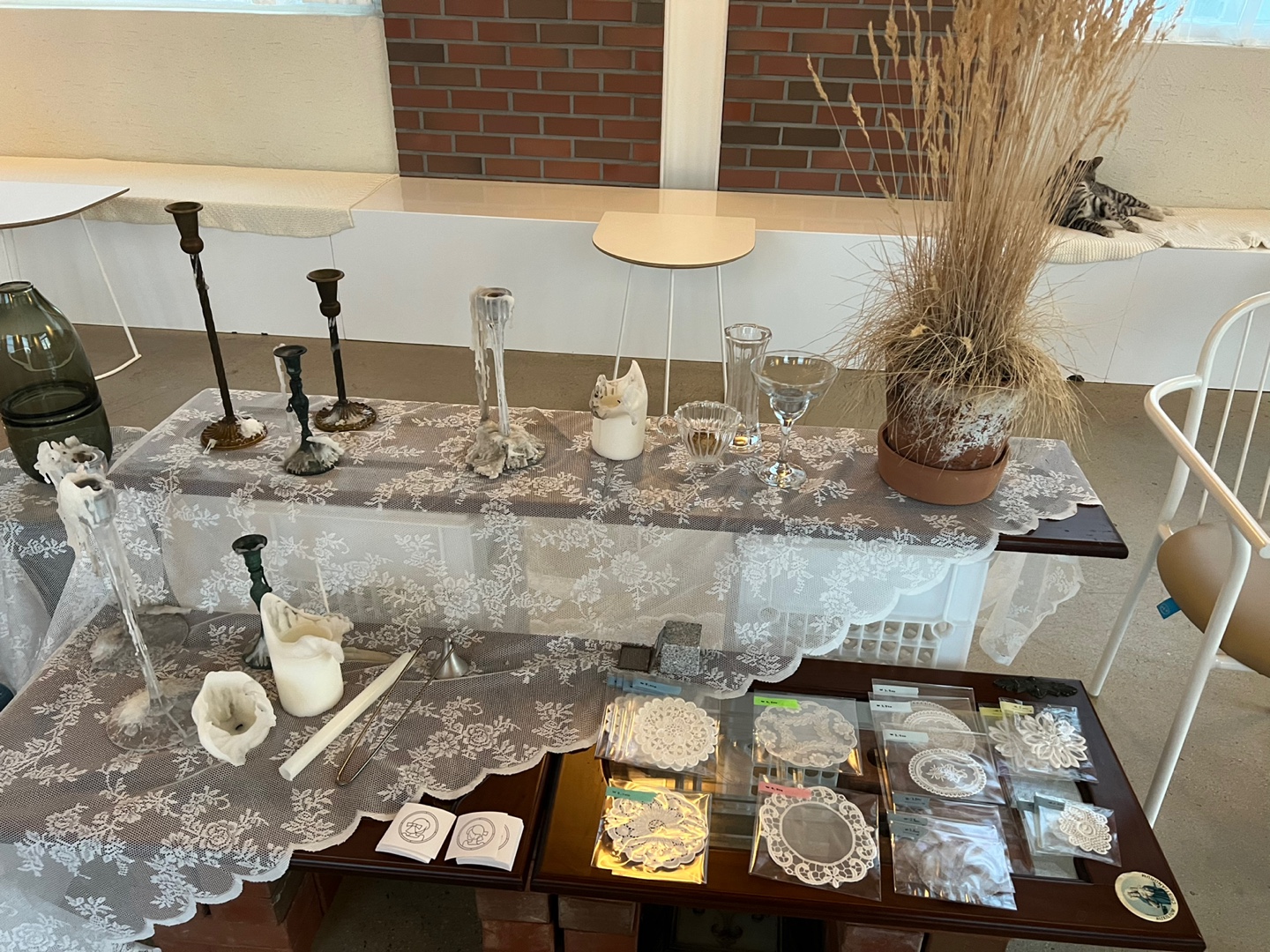 여러가지 촛대와 잔, 여기에서 파는 제품들도 있던것같다.