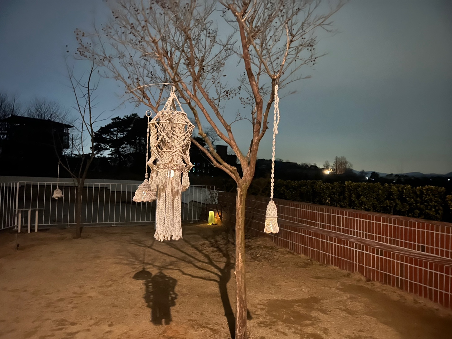 저녁이 되었다. 사진상으로는 으스스할 수 있으나.. 전혀 그렇지 않고 은은한 불빛이 나는 장식물이다.