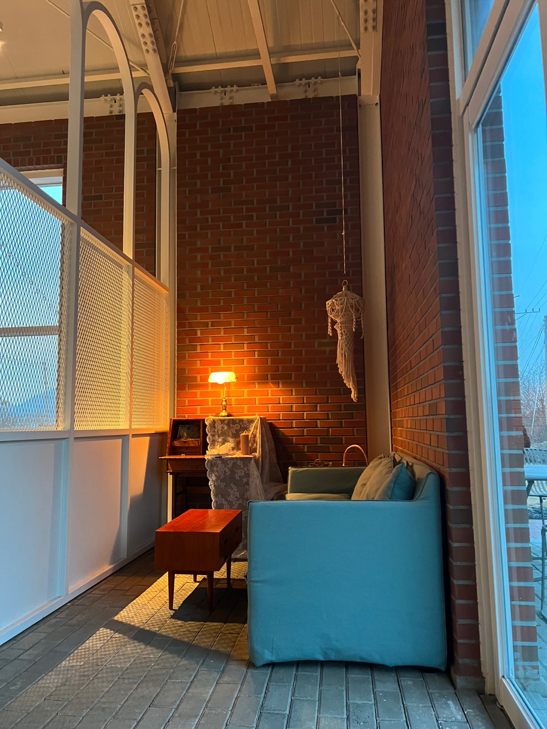 주문을 하고 자리에 앉았다. 맞은편에도 이렇게 자그마한 자리가 있다. 스탠드 조명의 불빛이 따듯하게 빛난다.