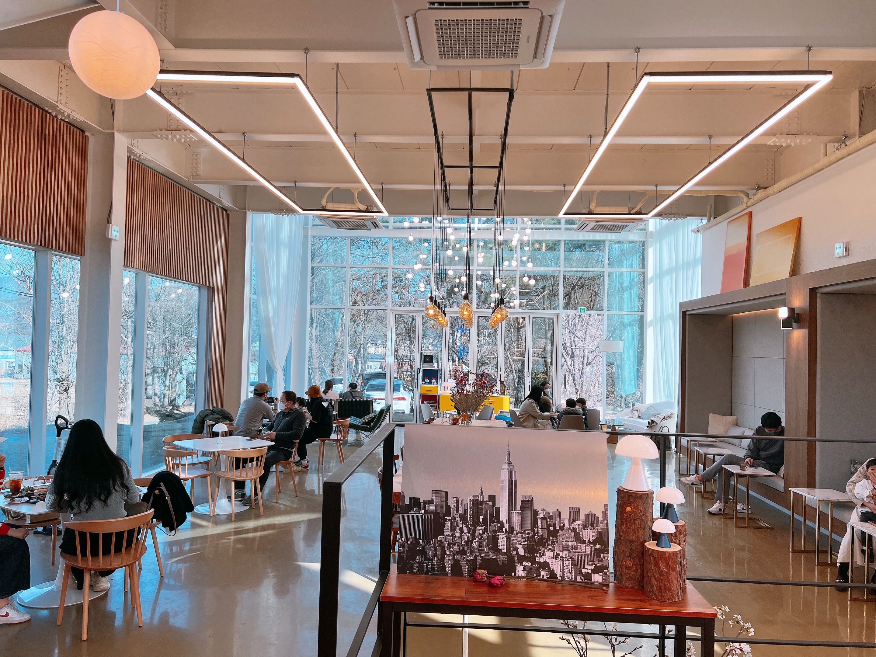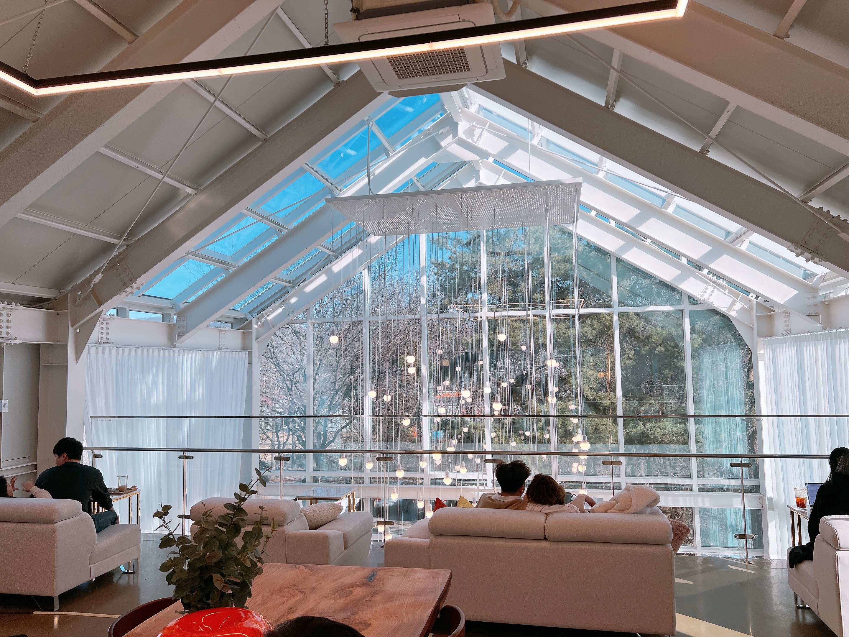 1층의 모습이다. 통창이 있어 밖이 예쁘게 다 보인다. 방문했던 날은 날씨가 좋아서 사진이 예쁘게 나왔다.