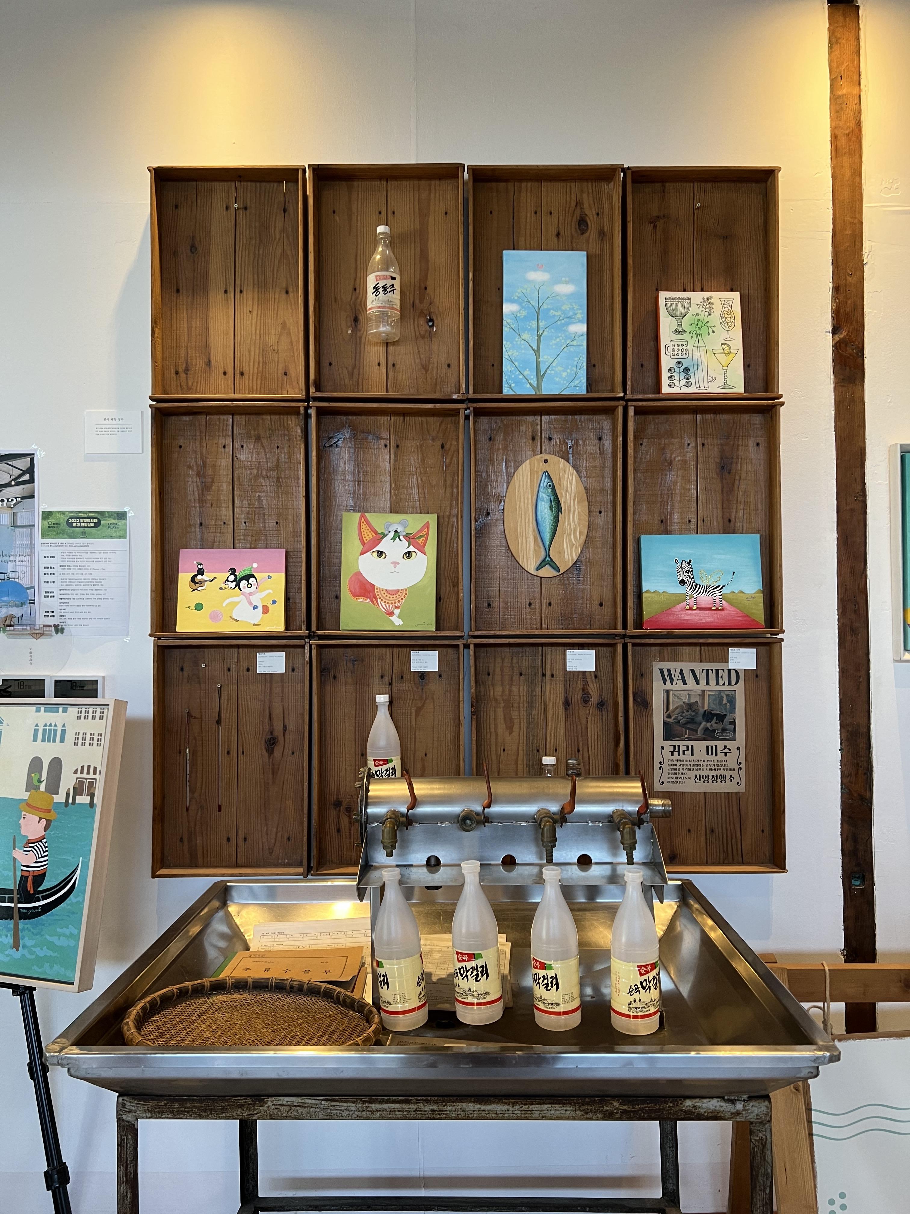 카페 내부에 걸려있던 그림들과 예전 막걸리를 조주했던 공장의 모습을 보여주는 부분들이다.