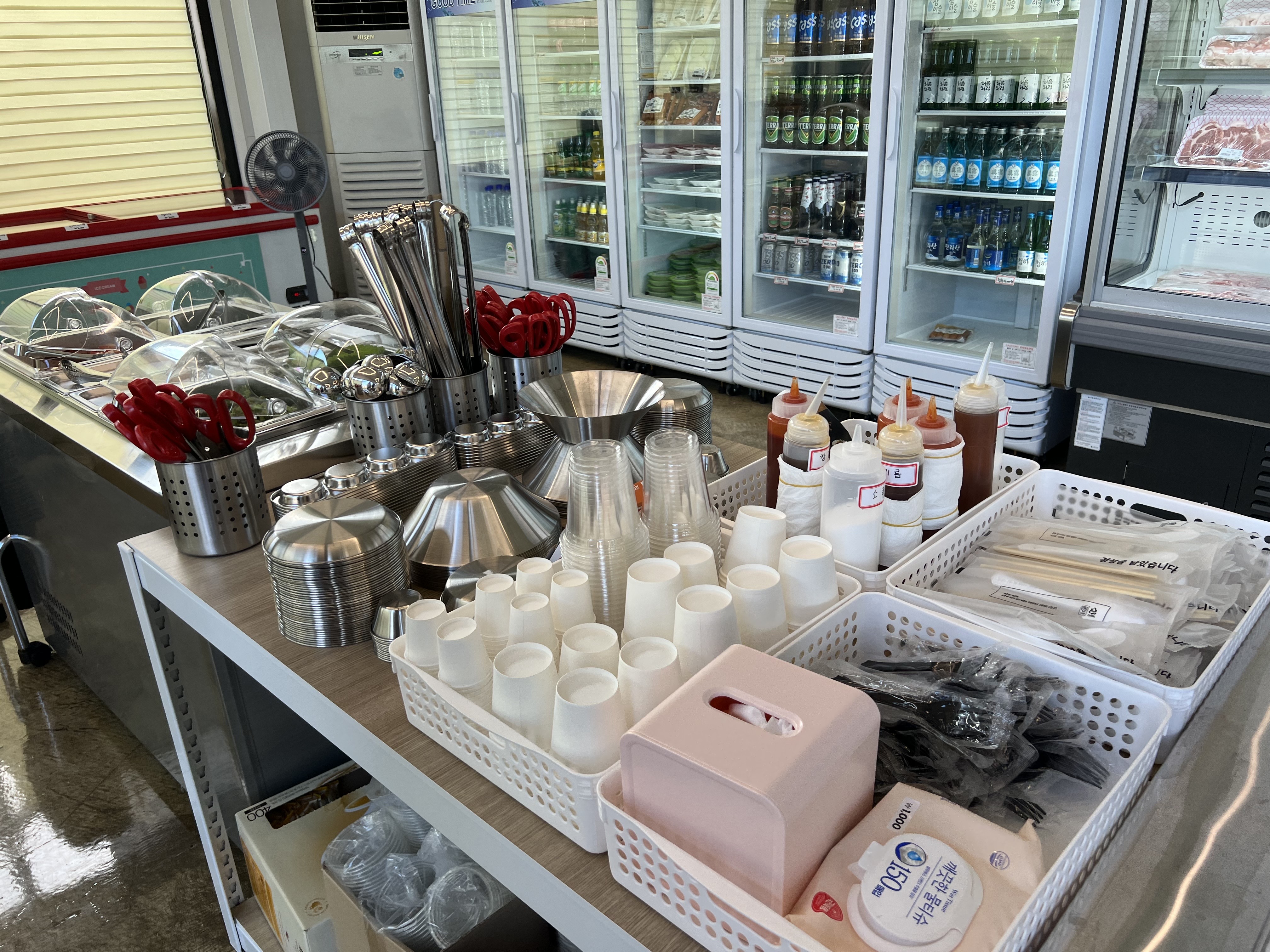 필요한 집기들 양념들은 다 제공해주고 고기류와 다른 재료들도 모두 팔고 있어 매우 편리했다.