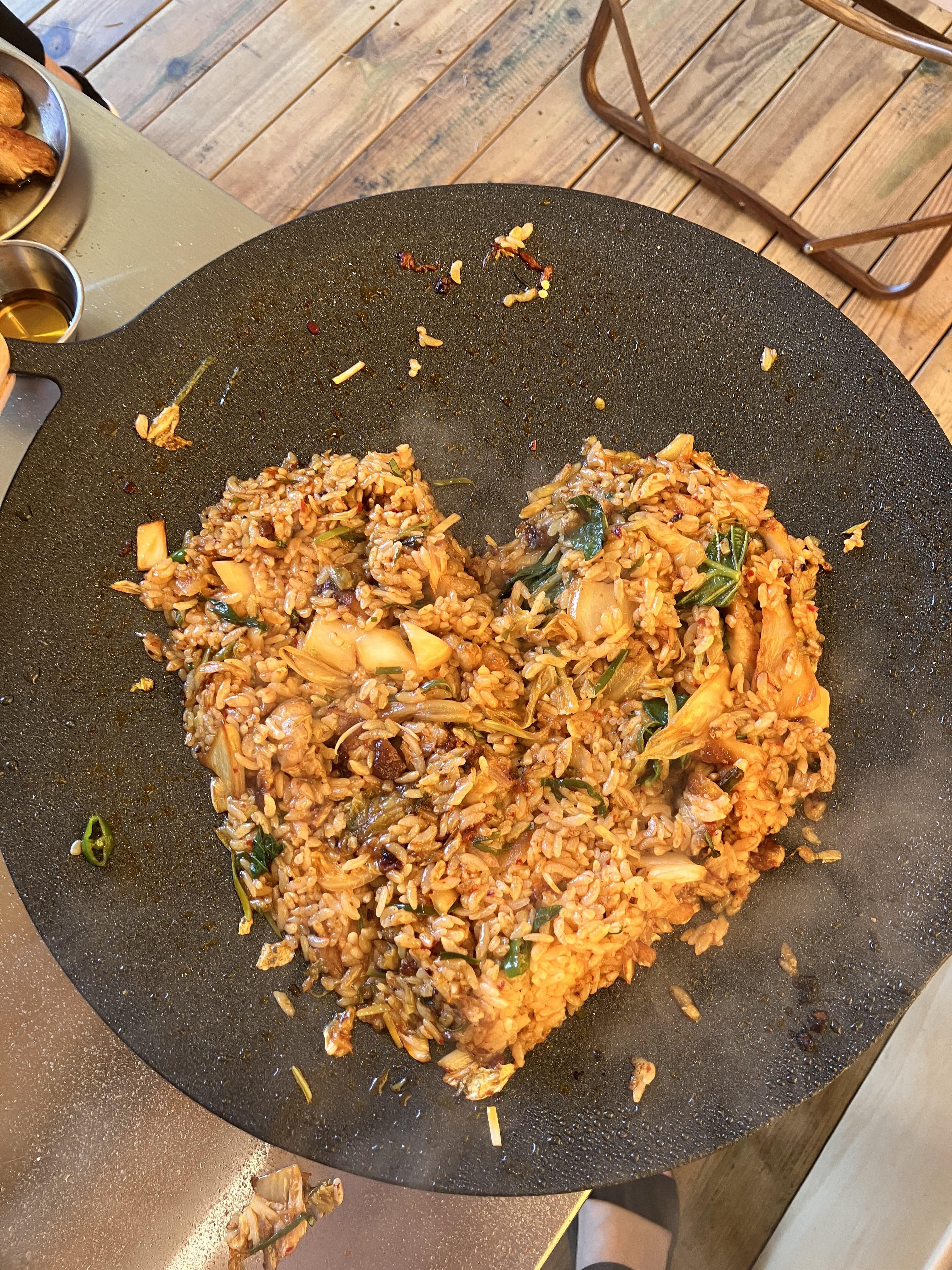 초벌한 고기를 그리들에 구우면서 나온 돼지 기름으로 볶음밥 볶아먹기 ㅎㅎㅎㅎ
