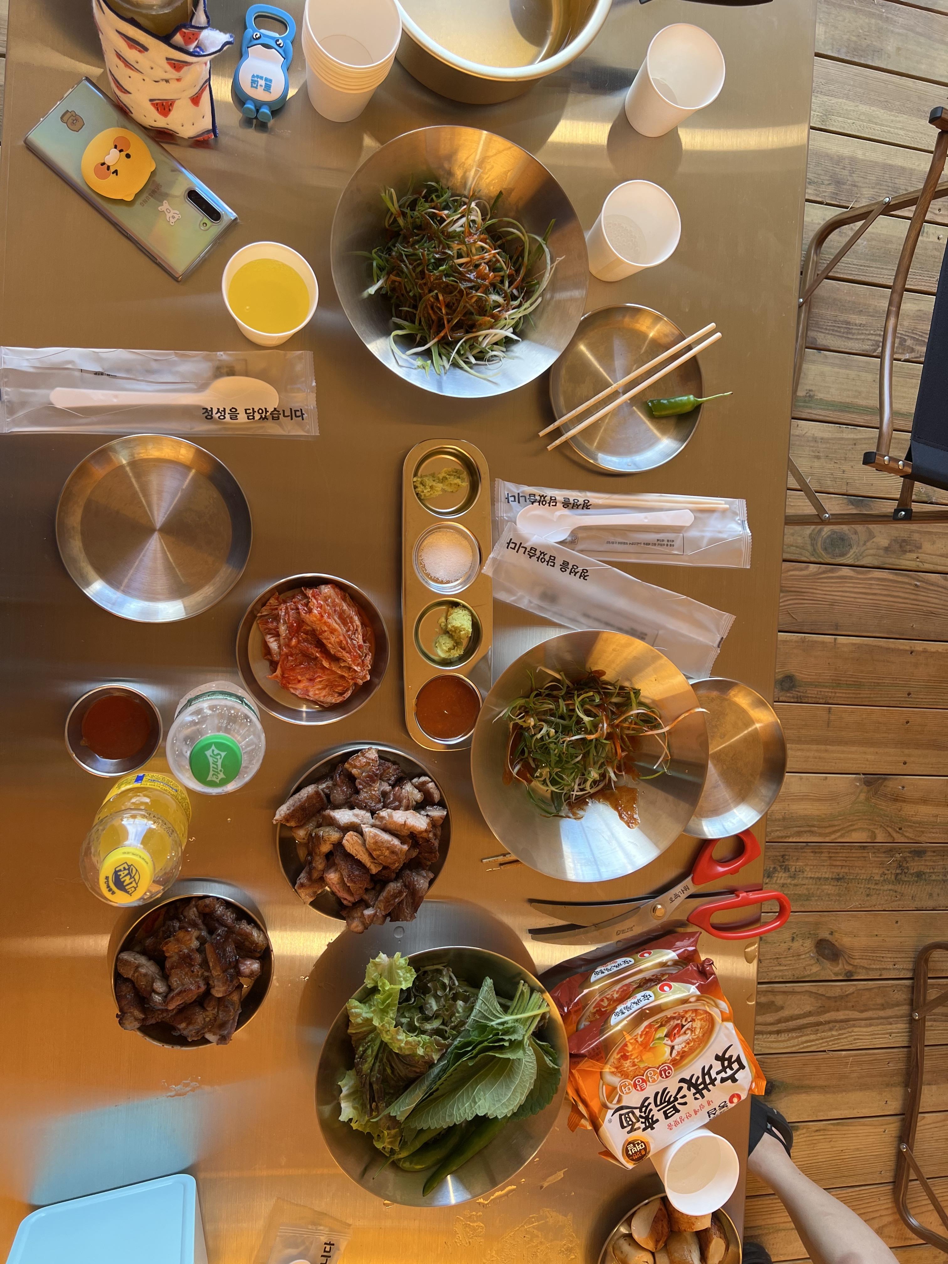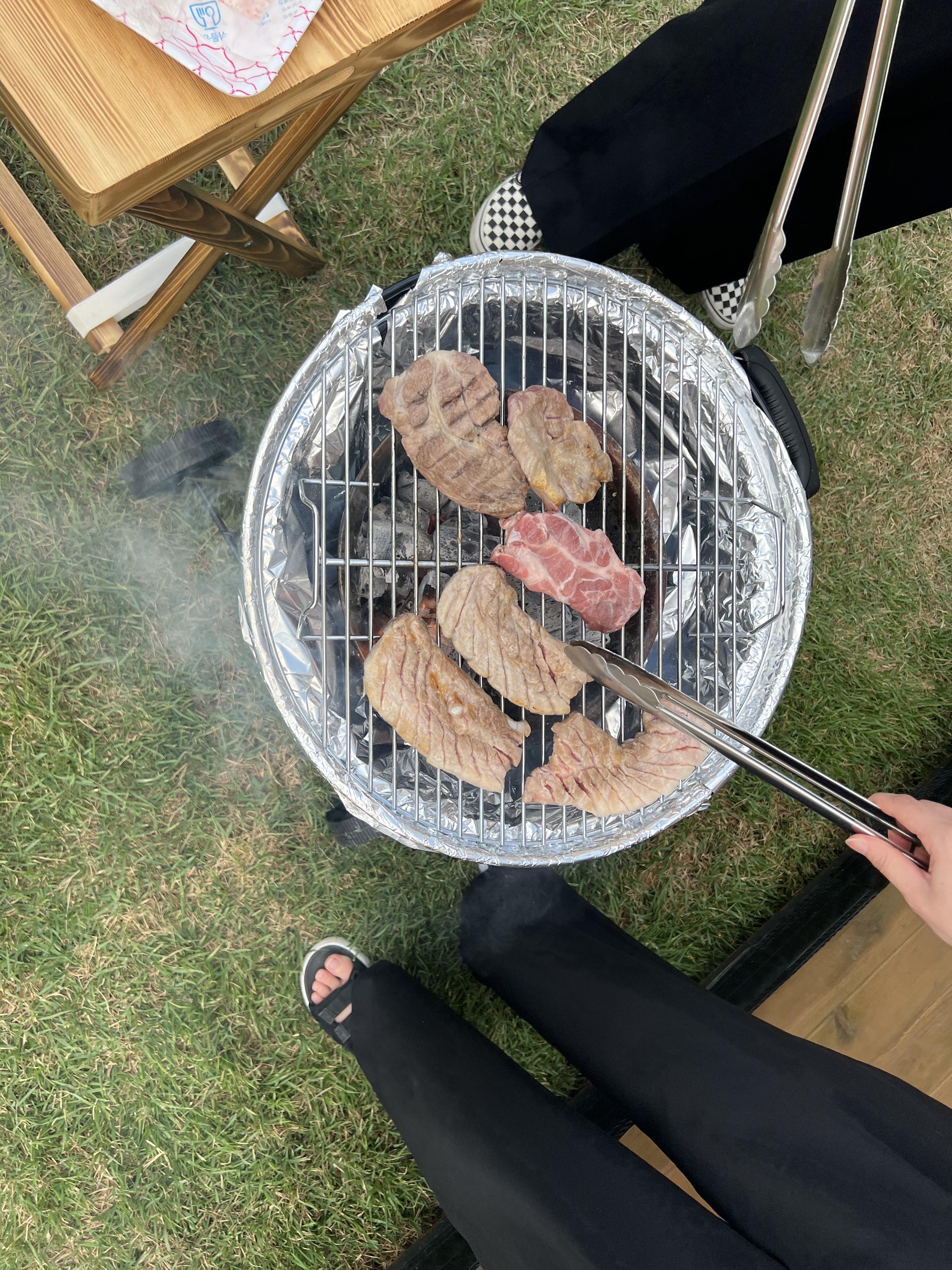 야외에서 고기를 구워먹는데, 몸만가면되는 시스템이다.ㅎㅎㅎ