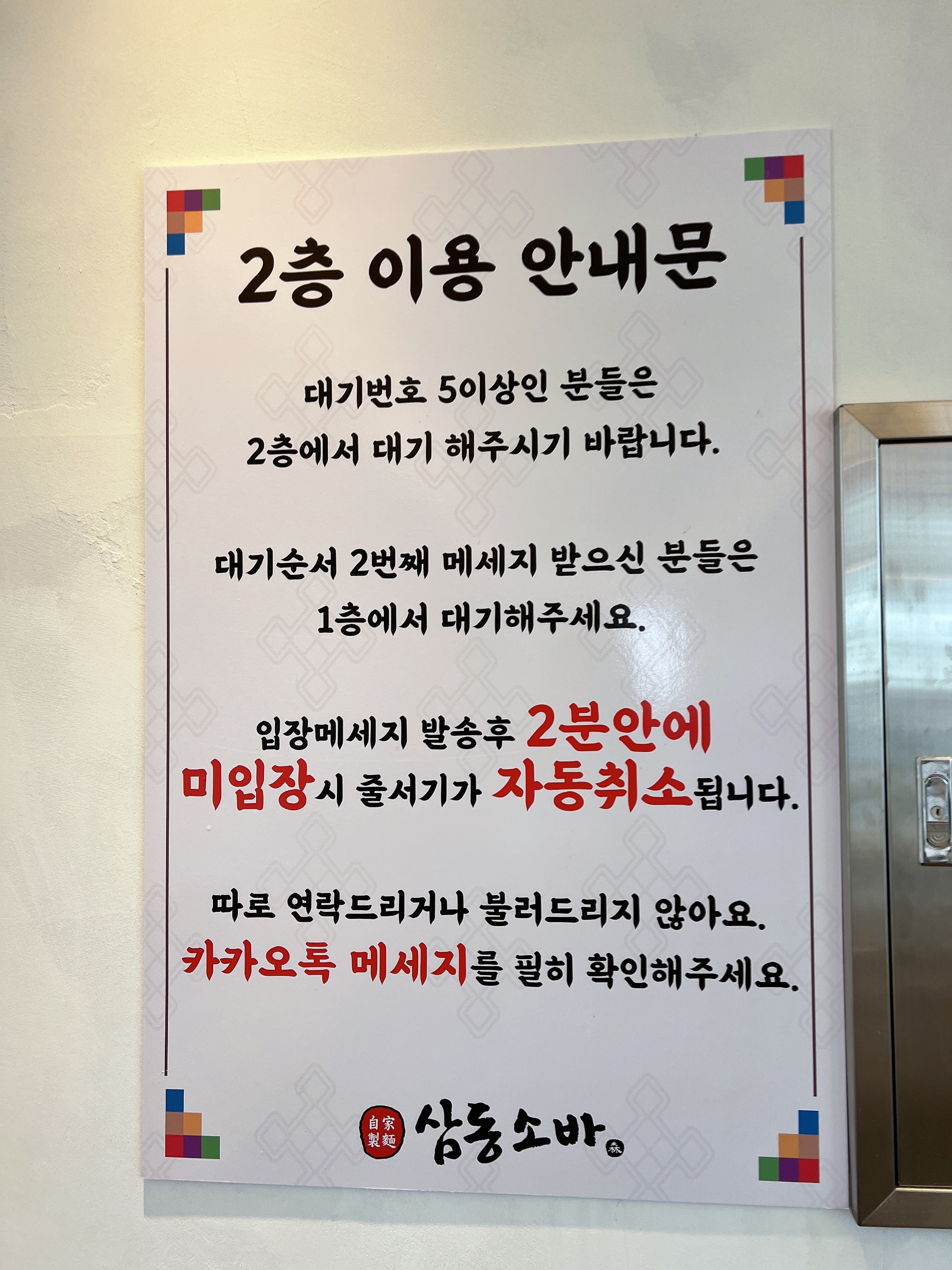2층 이용 안내문! 대기번호 5미만이면 1층에 대기 ㅎㅎㅎ