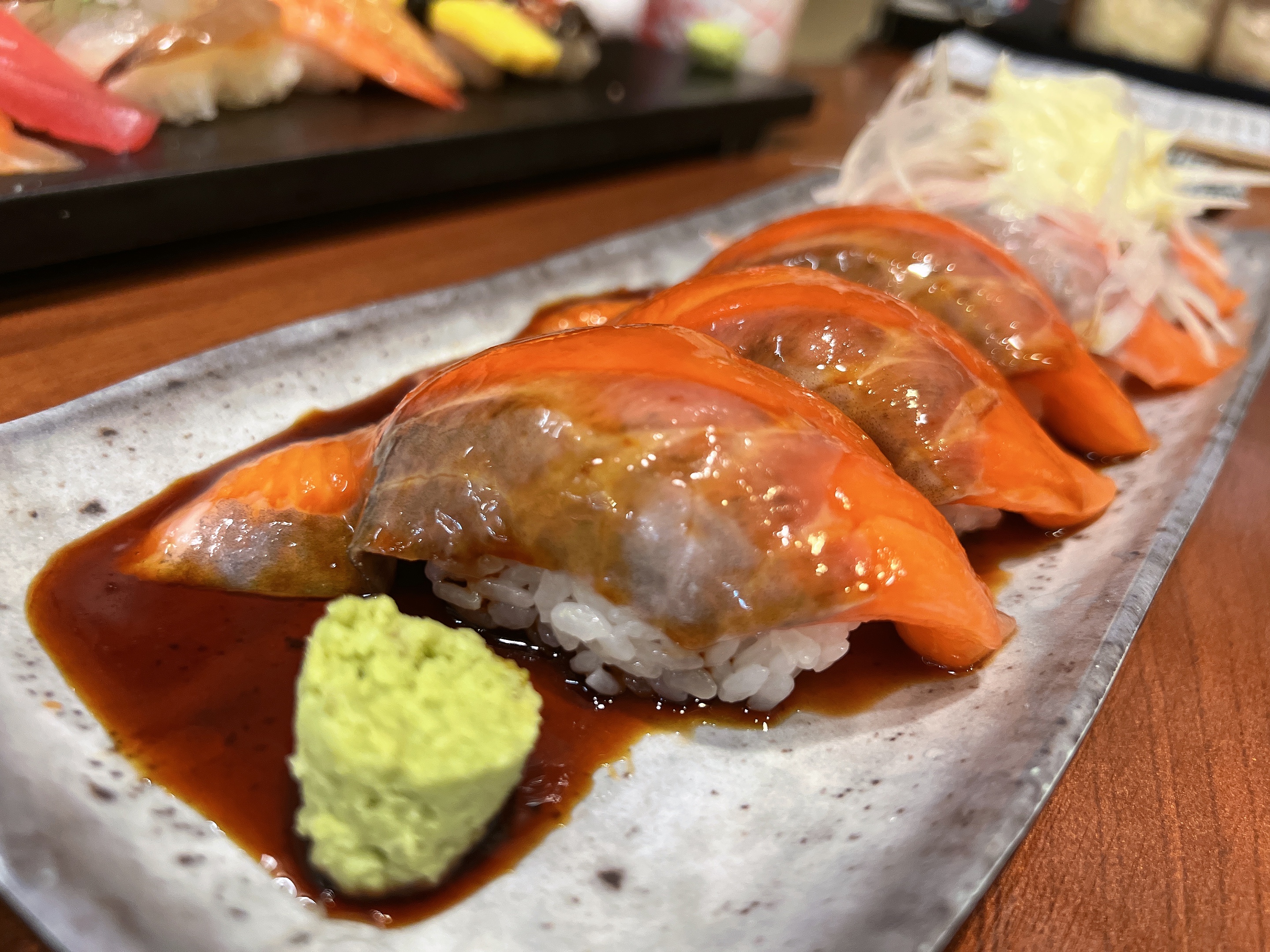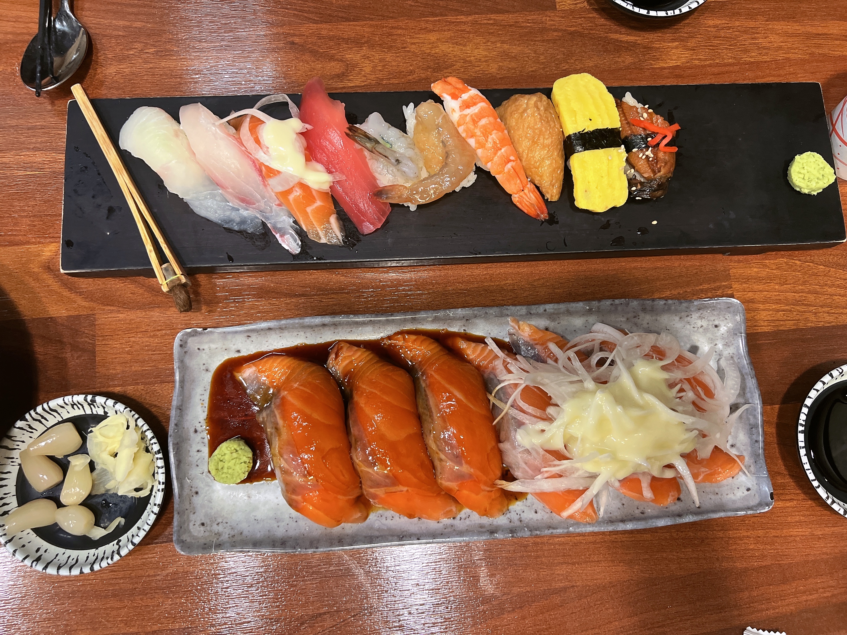 약간 더러워 보이지만 대왕연어초밥의 크기를 보여주고 싶어서..ㅎㅎㅎ
