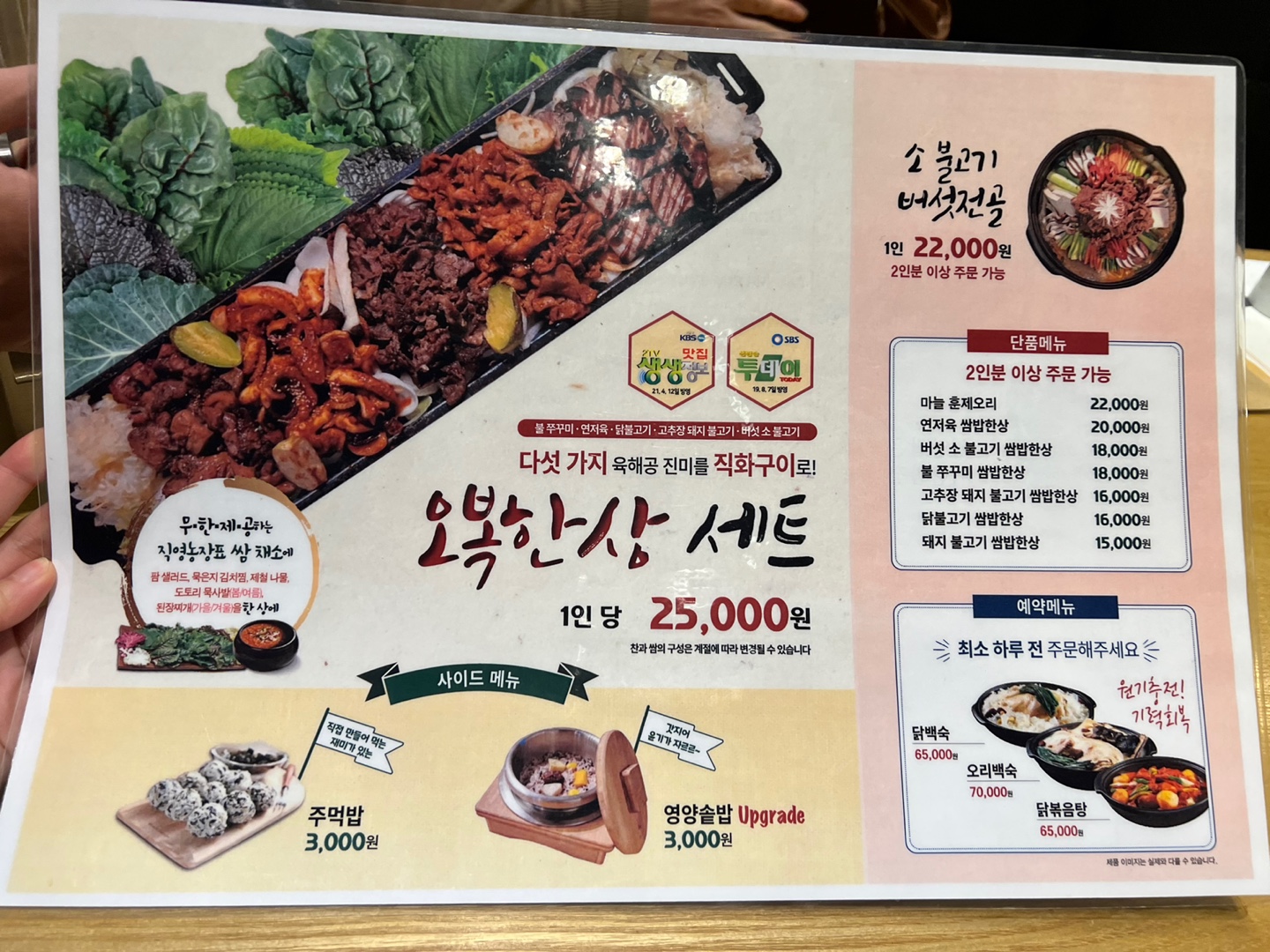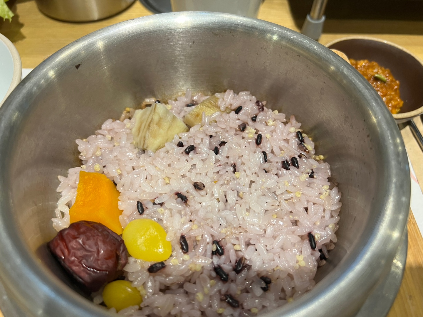 우리는 오복한상 세트 3인(인원수에 맞게 시켜야 한다.)과 영양솥밥 3인 모두 업그레이드 해서 먹었다.