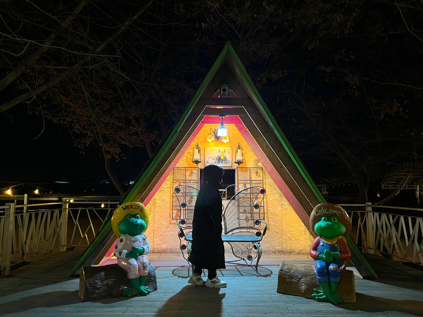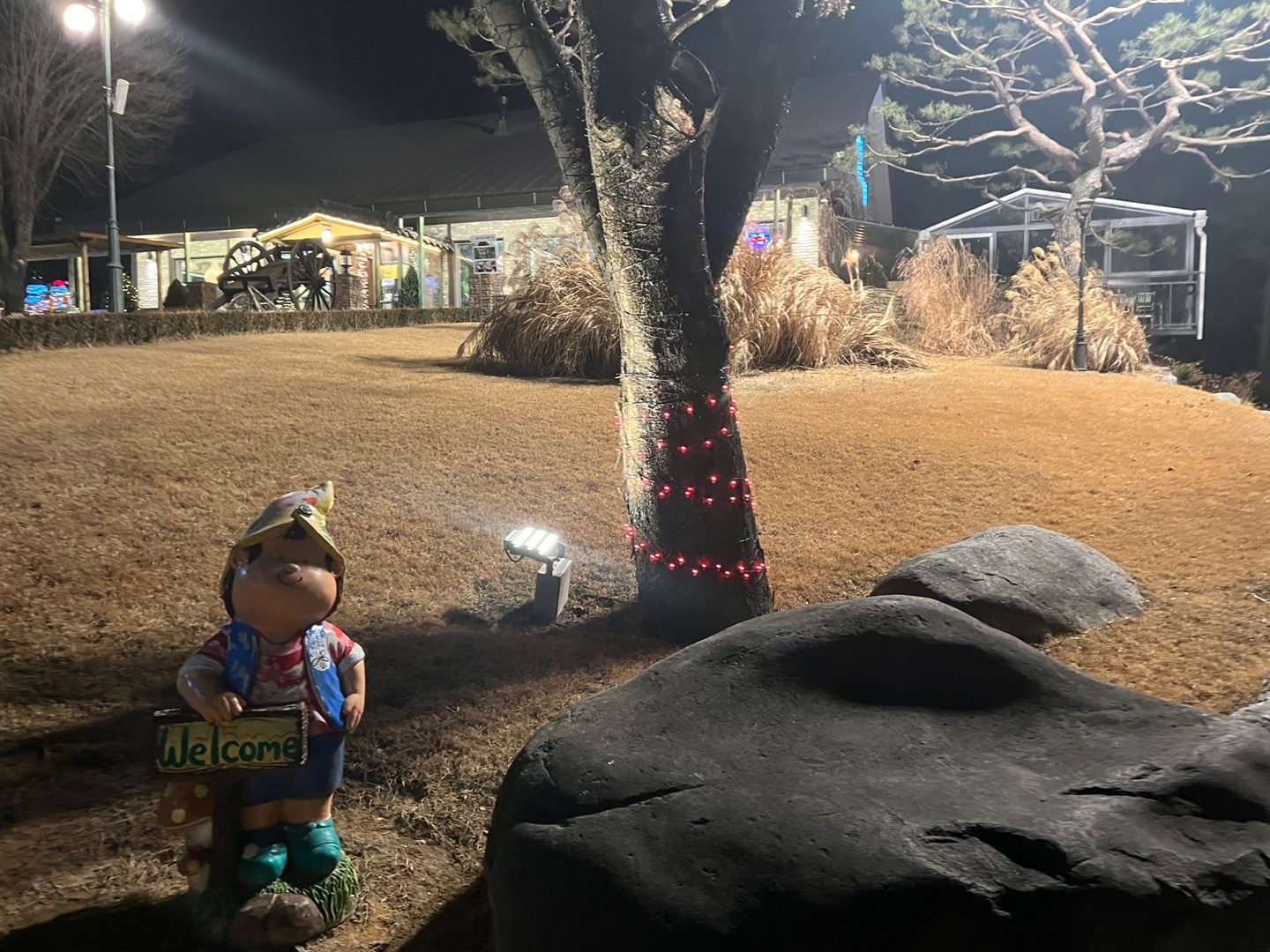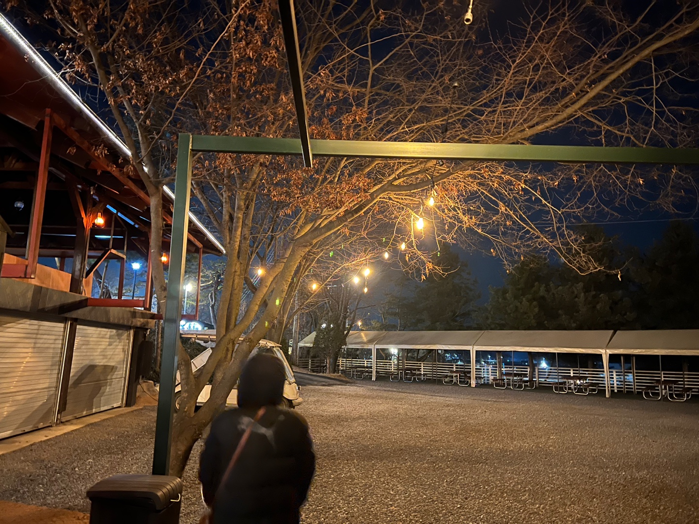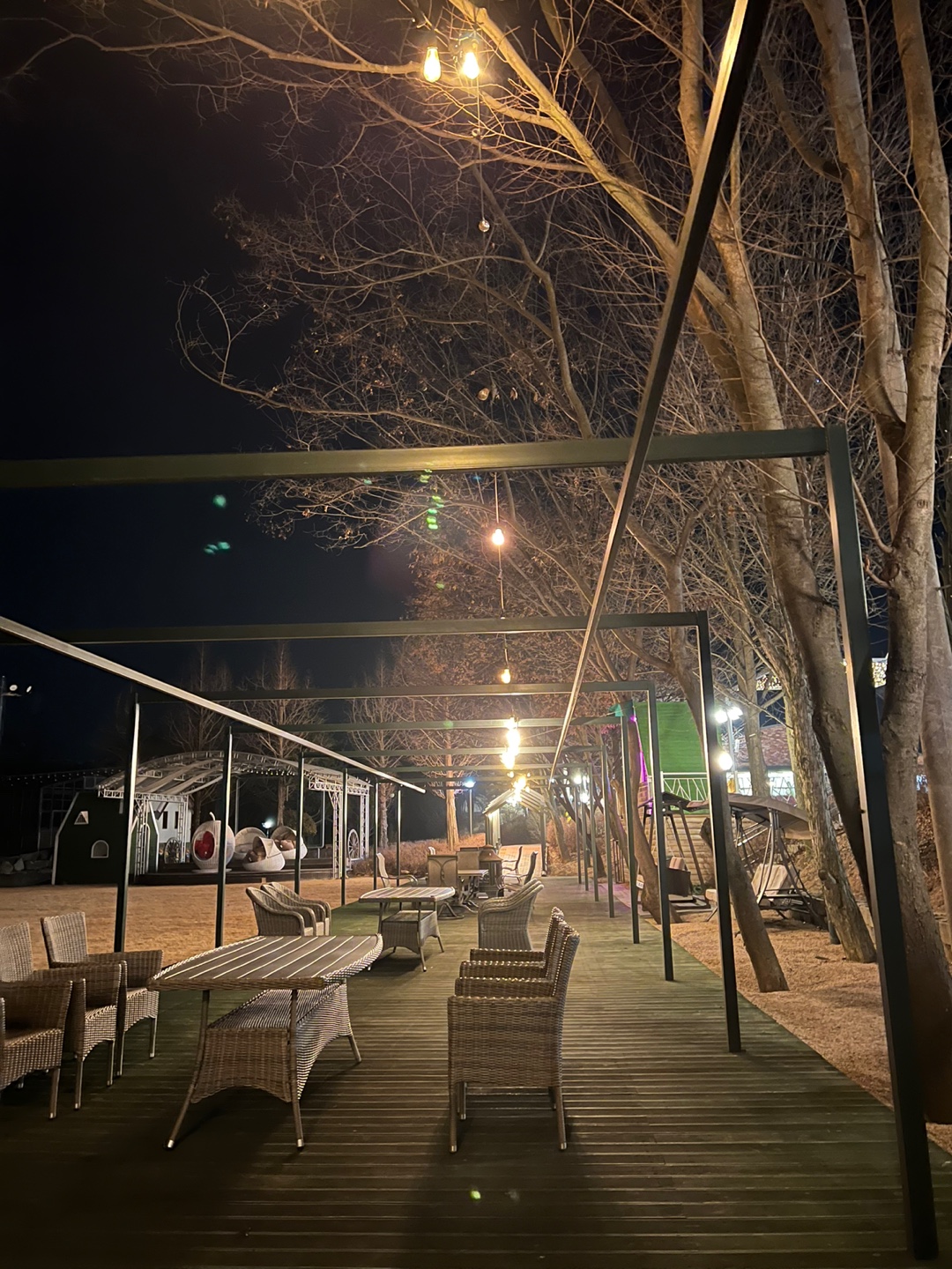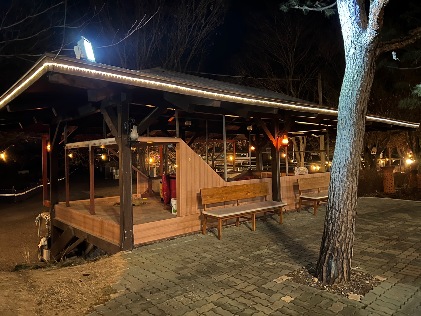 한바퀴 돌고 가는길. 여기도 앉아 쉴수있게 되어있었다. 전구들이 예쁘게 빛나고 있어 한컷 찍었다.