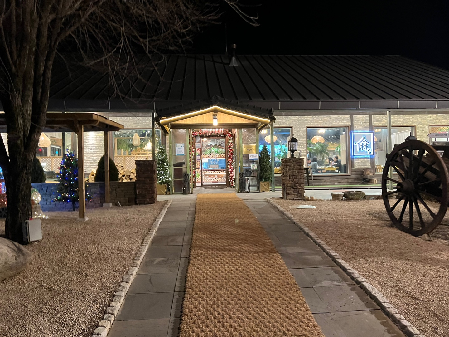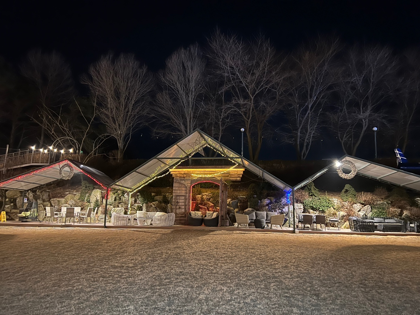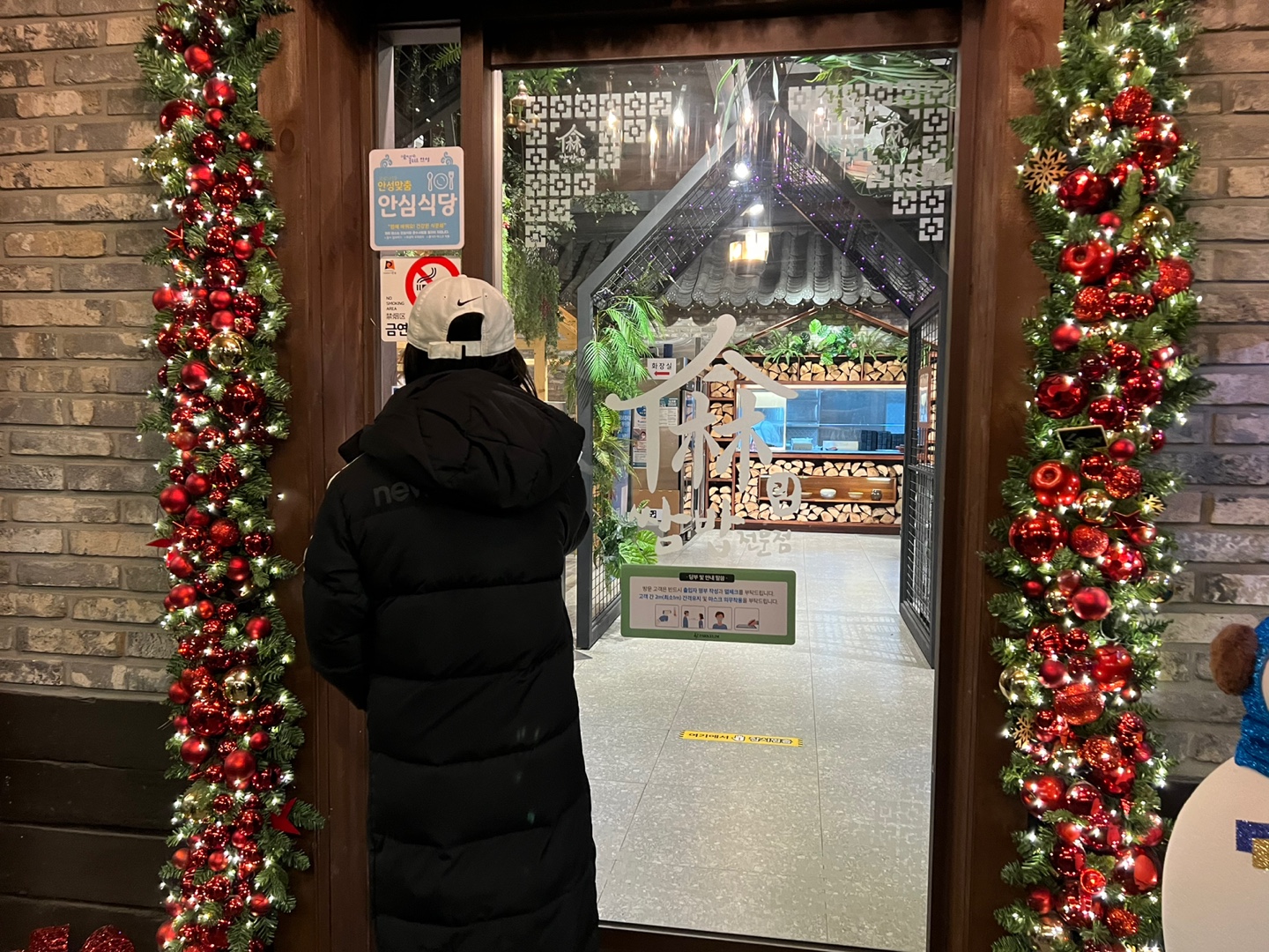 외관은 정갈한 한식집의 모습이다. 여기저기 나무들이 전구를 둘러 화려했다.