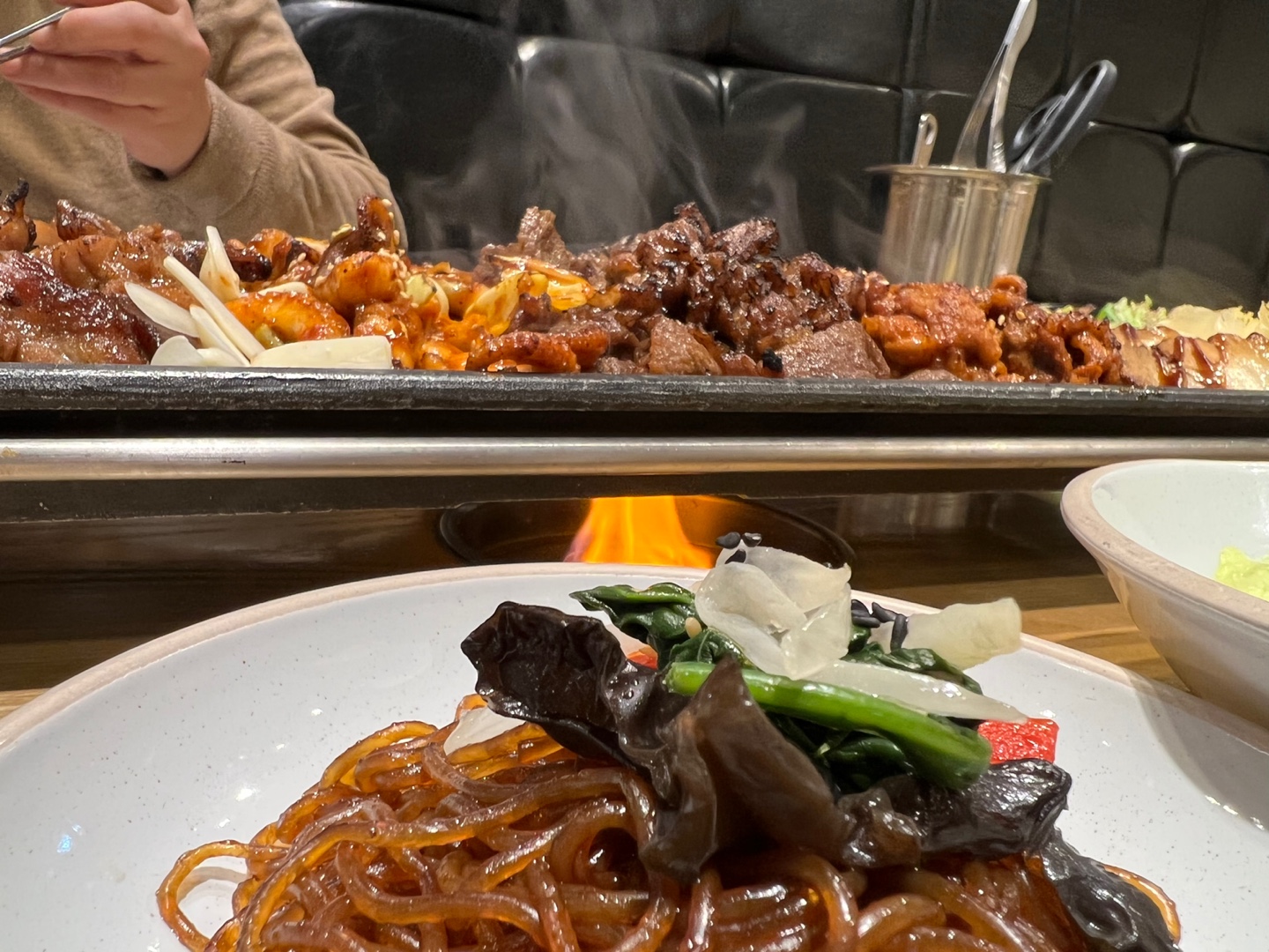 드디어 본 메뉴가 나왔다! 왼쪽부터 닭불고기, 불쭈꾸미, 버섯소불고기, 고추장돼지불고기, 연저육인것같다.